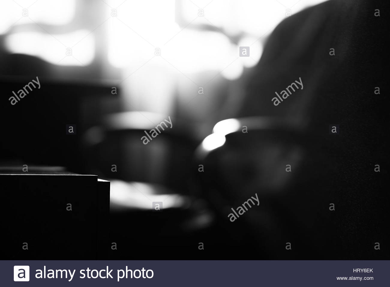 Description: Black and white office dusty chair bokeh background hd Stock Photo